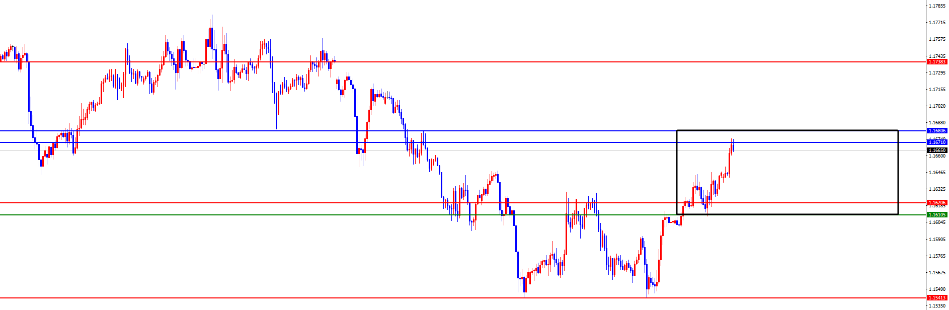 美指如期承压下跌,短线关注98.40-98.90区间 98.90之下短线还在承压中,此位置得失决定能否直接回补缺口 欧美 欧美方面,周三欧美价格总体呈现上涨的状态。当日价格最低下跌至1.1601位置,最高上涨至1.1647位置,收盘于1.1646位置。回顾周三欧美市场表现,在早盘期间价格短线震荡后依旧维持上涨表现,回看本周初给大家的思路目前价格已经如期测试到日线及周线阻力区域,后续短线暂时关注四小时分水岭,四小时分水岭决定能否回补缺口及是否再度承压。 从多周期分析,从月线级别来看,欧美受撑于1.1100位置,所以价格在此位置之上长线多头对待。从周线级别看价格受撑于1.1680区域的支撑,此位置是中线走势的多空分水岭,上周已经进行下破,关注本周最终收盘表现。从日线级别,日线上是我们强调波段走势的关键,目前日线阻力于1.1670位置,价格本周如期再度回踩,今日作为过度日对待。从四小时看,在上周五进行突破四小时阻力,周二价格如期再度突破站稳向上反弹,并且顺利测试到日线及周线阻力区间。目前四小时支撑于1.1610-20区间支撑,此位置在没有下破前短线还在多头,价格一旦下破则再转头看承压,目前注意市场节奏,操作上右侧交易方式对待。