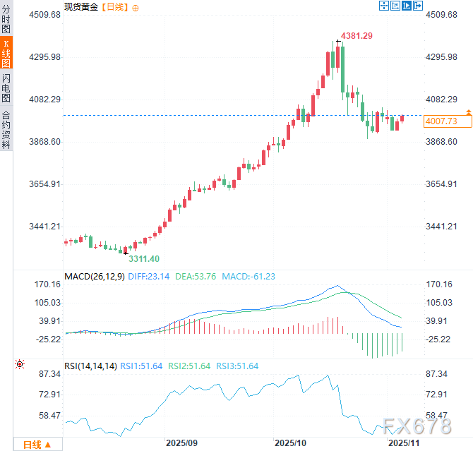 (现货黄金日线图) 北京时间16:26,现货黄金现报4013.10美元/盎司。